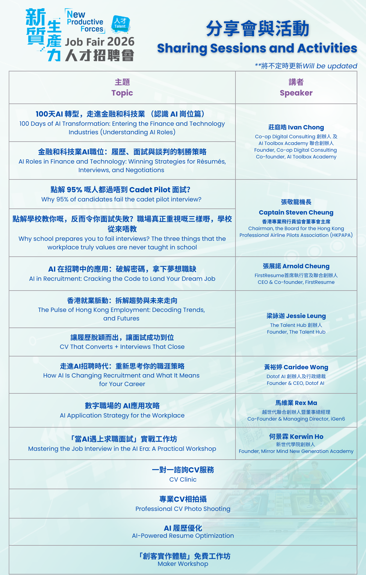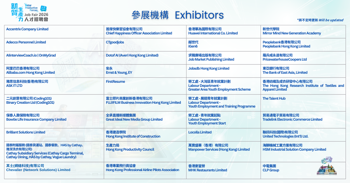 招聘會超過40間知名企業、機構及政府部門參展,為求職者提供10,000+就業機會。
