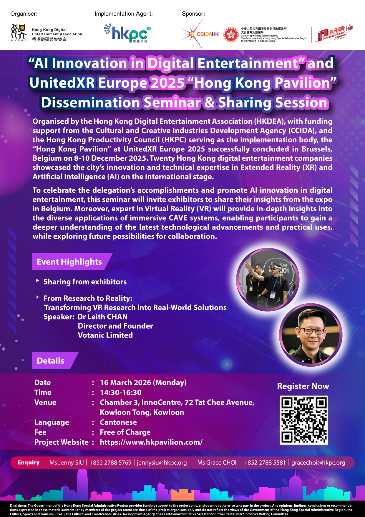 “AI Innovation in Digital Entertainment” and UnitedXR Europe 2025 “Hong Kong Pavilion” Dissemination Seminar & Sharing Session